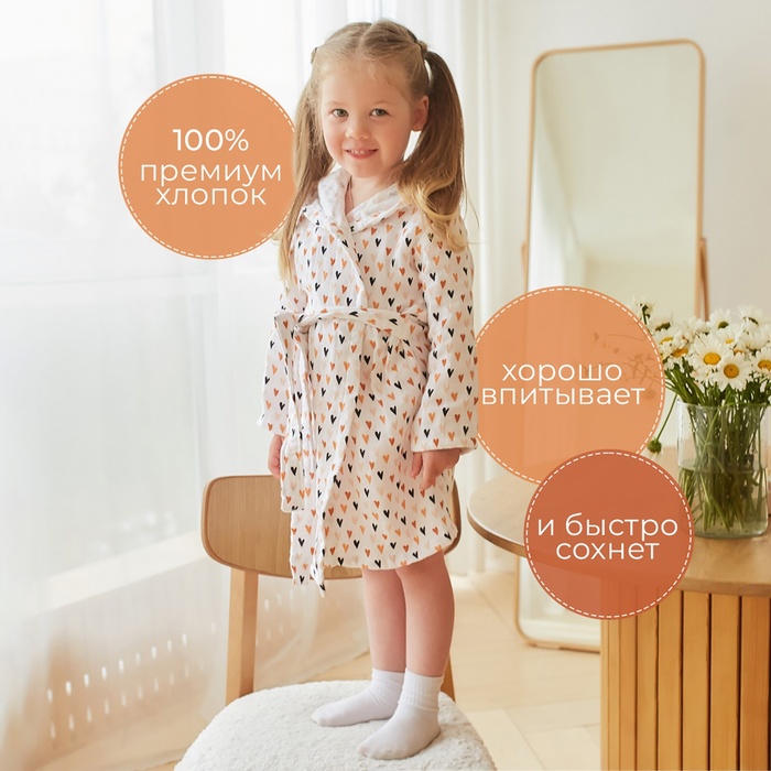 Халат детский муслиновый LoveLife «Сердечки» (2 года, рост 92-98 см) 100% хлопок, 235 г/м² — Характеристики