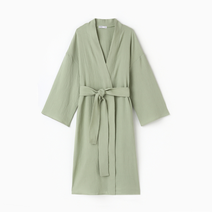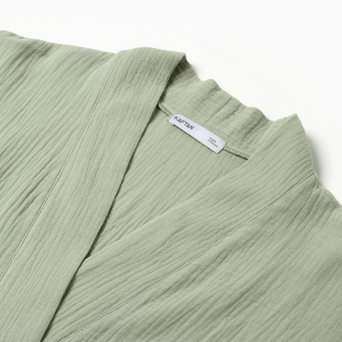 Женский домашний халат из коллекции KAFTAN Basic в нежно-зелёном цвете — это стильное и удобное решение для повседневного использования. Халат из муслина дарит комфорт и лёгкость. Прямой покрой и длинные рукава делают его универсальным, подчеркивая фигуру.