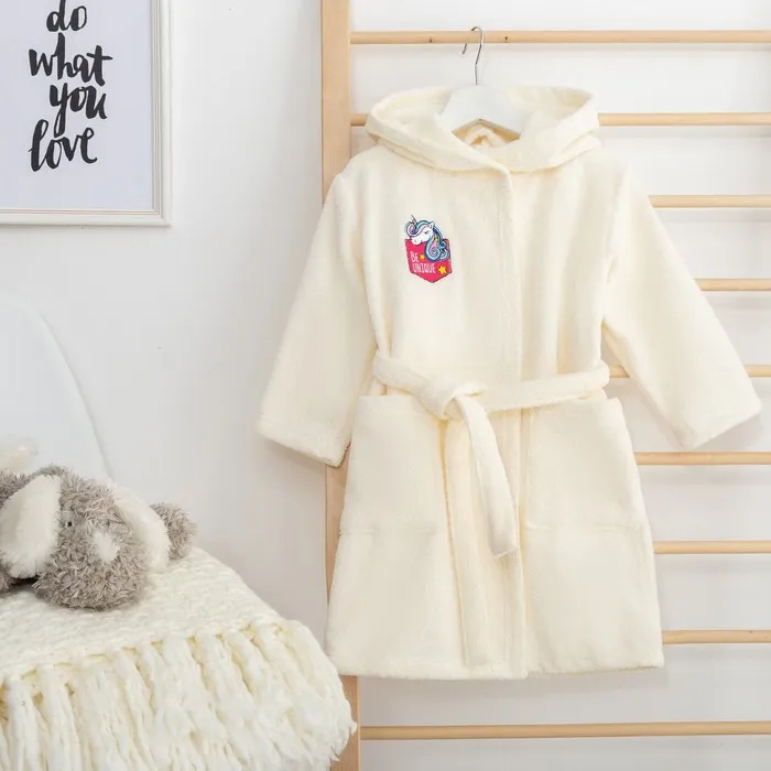 Халат махровый детский "Единорог", р-р 30, цв.молочный 340 г/м2 хл.100% с AIRO