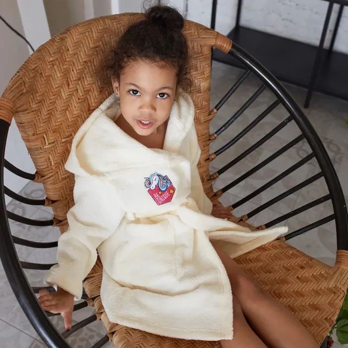 Халат махровый детский "Единорог", р-р 28, цв.молочный 340 г/м2 хл.100% с AIRO