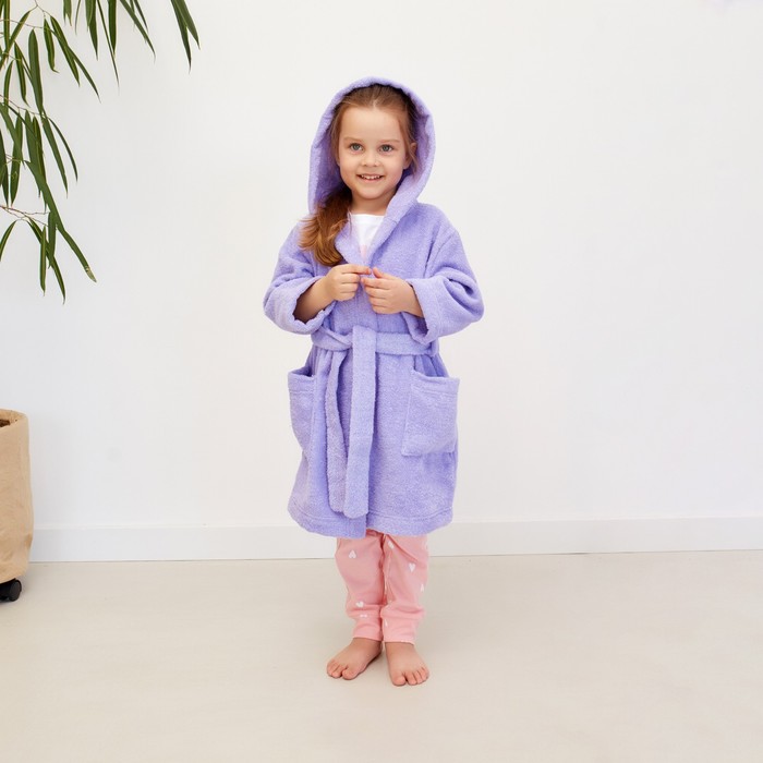 Халат махровый детский Экономь и Я, размер 28, цвет сиреневый, 100% хлопок, 320 г/м2