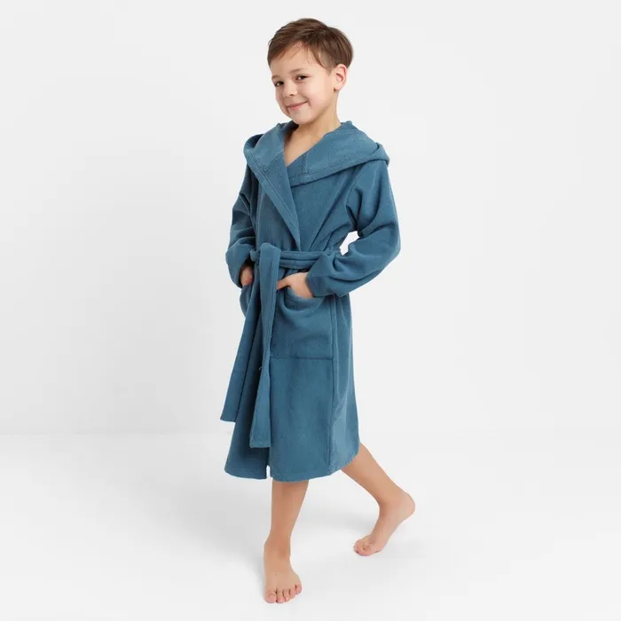 Халат махровый детский Этель «Джентльмен», размер 32 (110-116 см), морская волна
