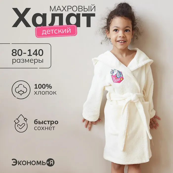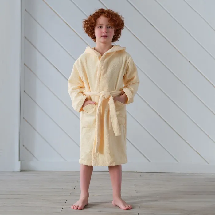 Халат легко стирается, быстро сохнет и сохраняет свою форму. Его можно использовать после купания, на пляже или дома, создавая уют и комфорт для вашего ребёнка.