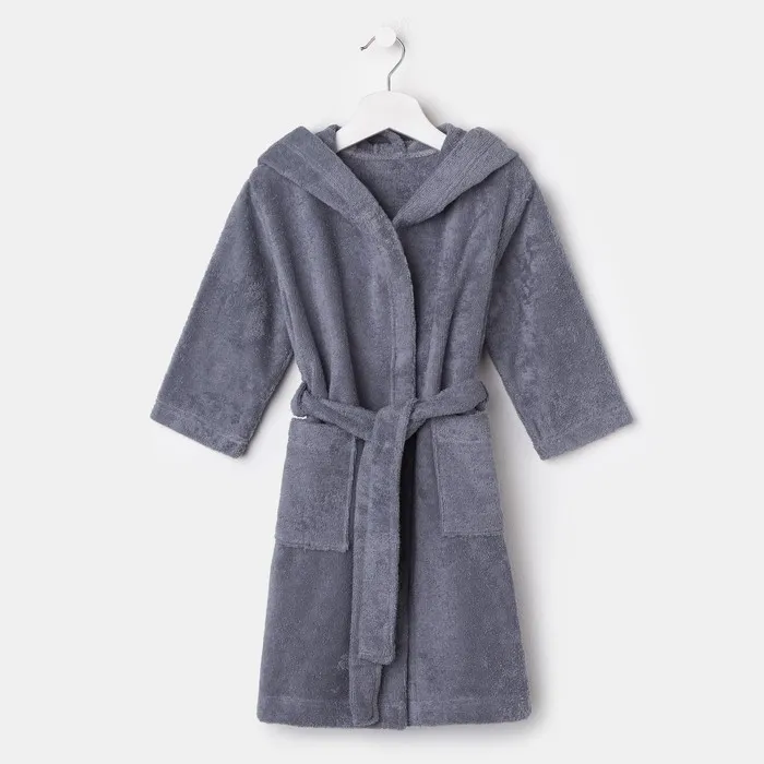 Халат махровый детский Этель Little king, размер 34 (122-128 см), серый
