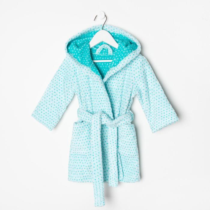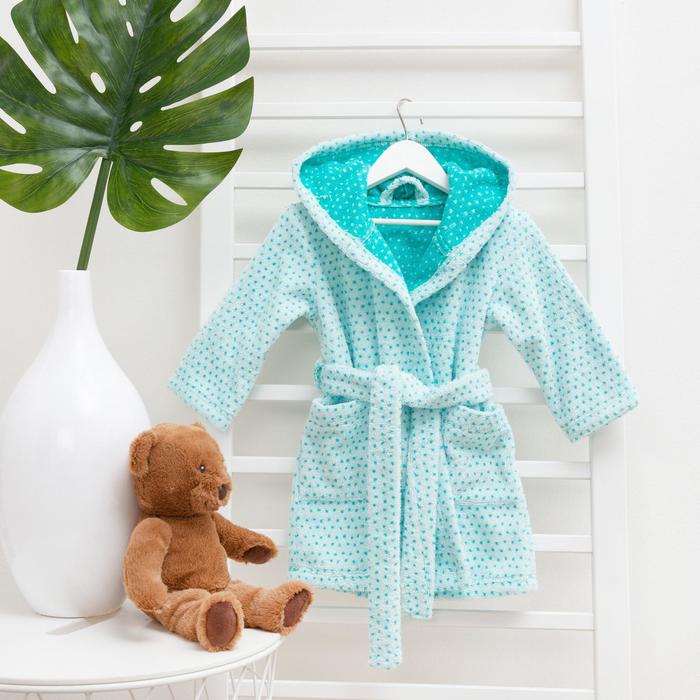 Халат махровый детский Крошка Я «Крапинка» размер 32, цвет бирюзовый, 100% хлопок 360 г/м2