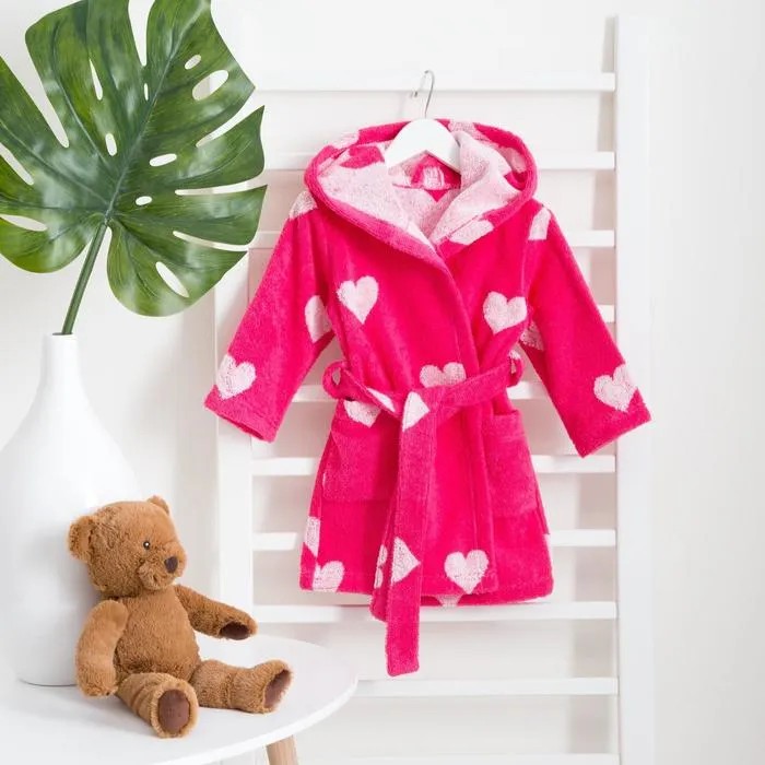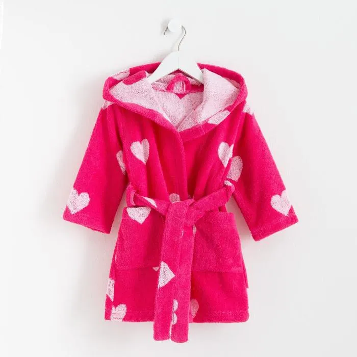 Халат махровый детский Крошка Я «Сердечки» размер 28, цвет розовый, 100% хлопок 360 г/м2 — Характеристики