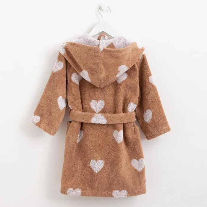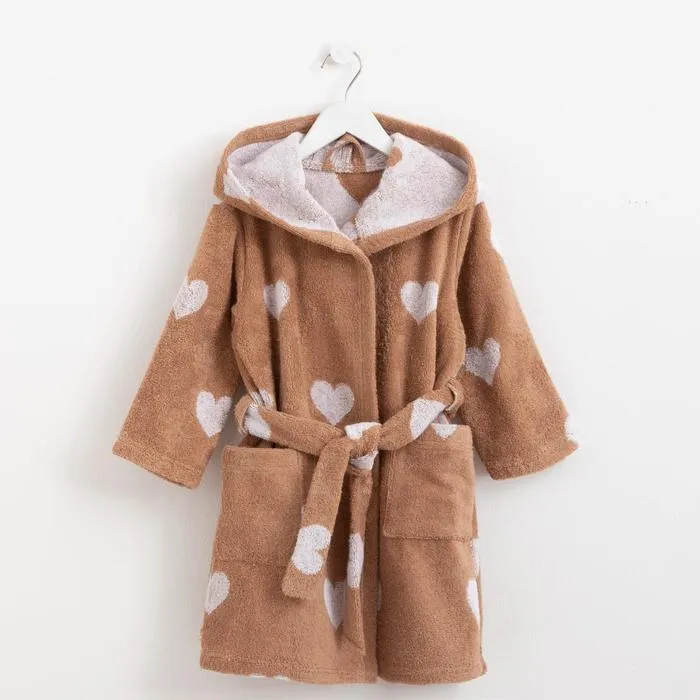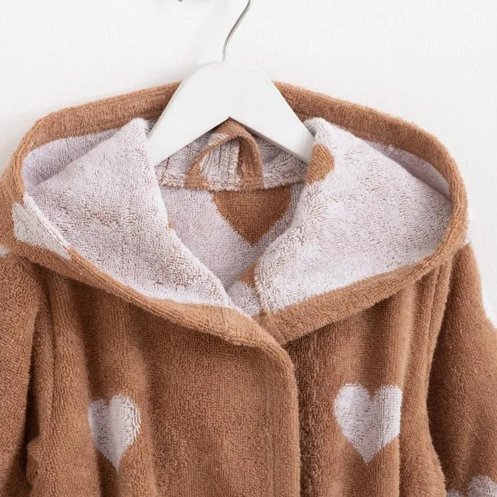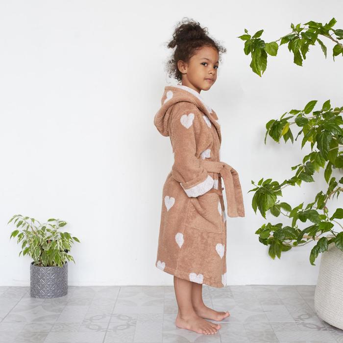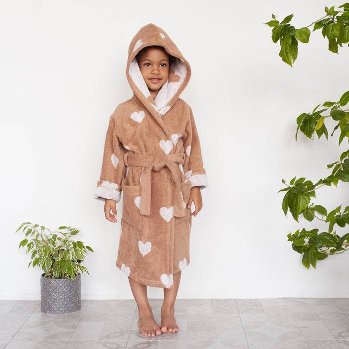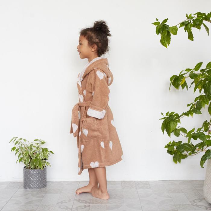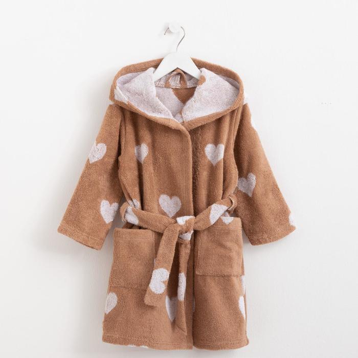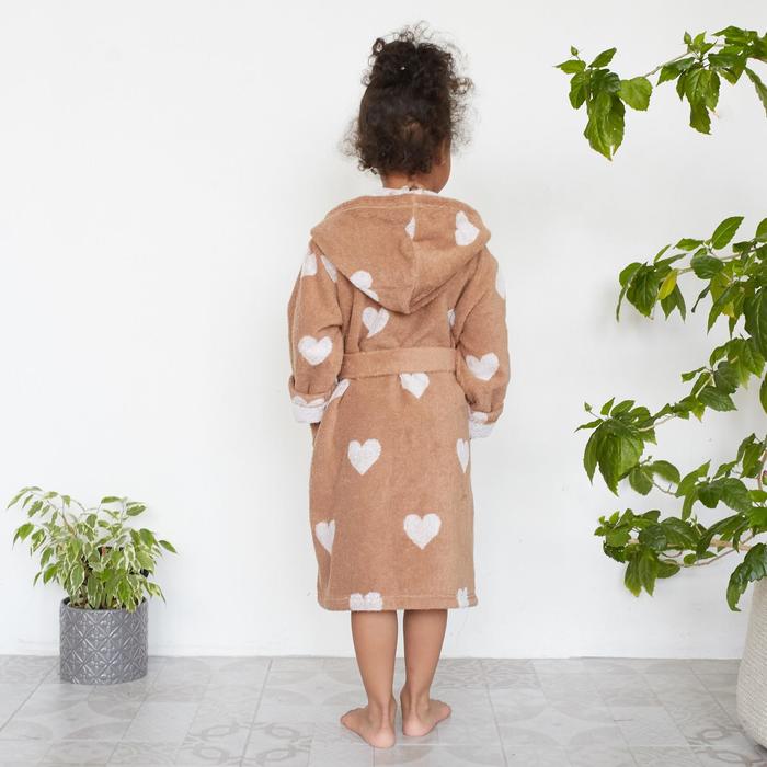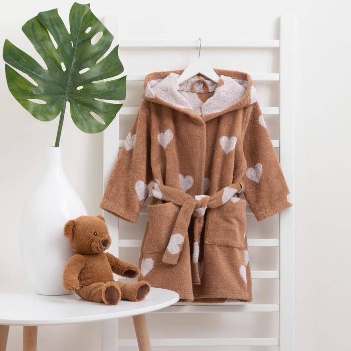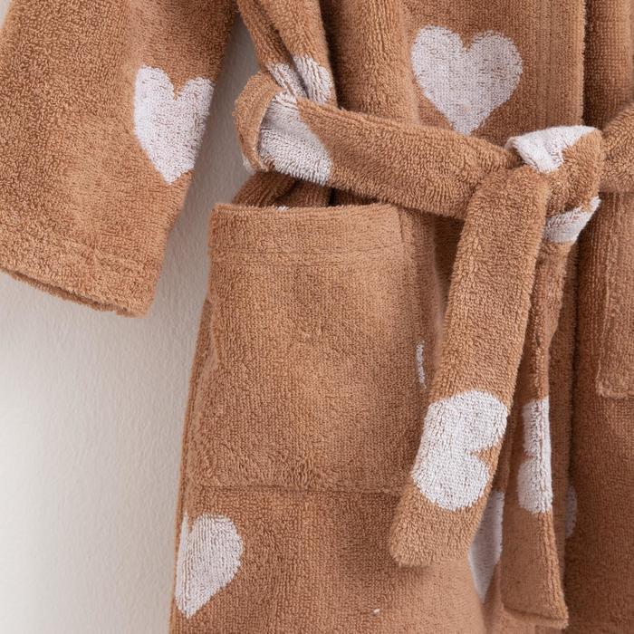 Халат махровый детский Крошка Я «Сердечки» размер 30, цвет мокко, 100% хлопок 360 г/м2 — Характеристики