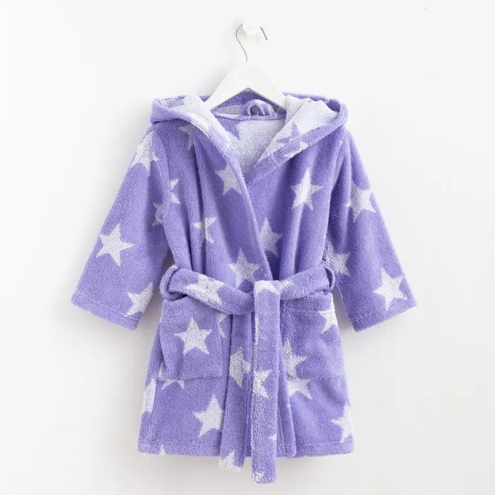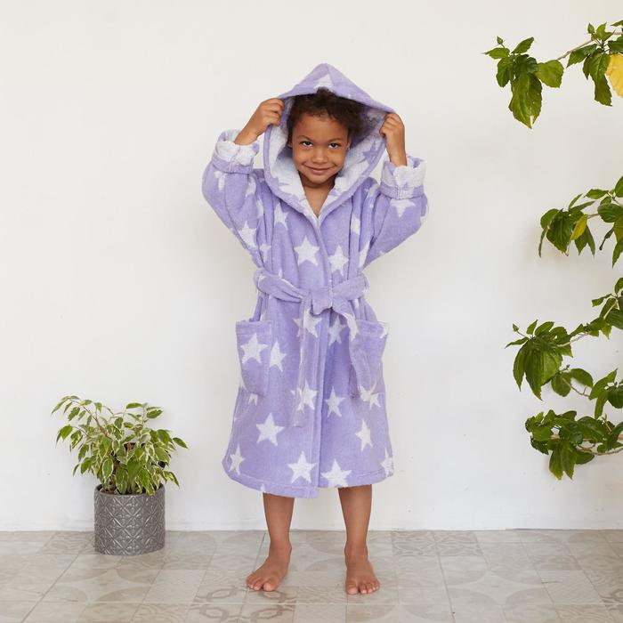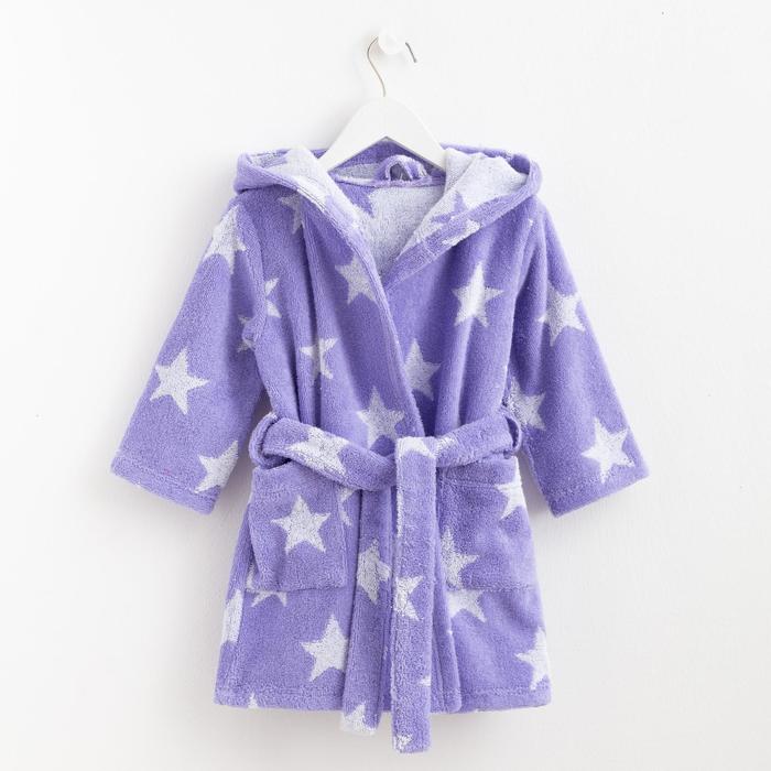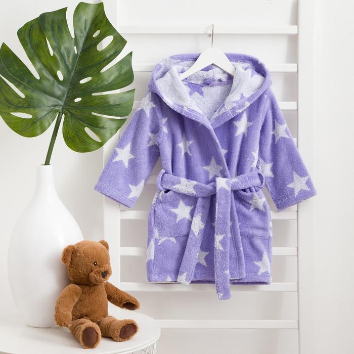 Халат махровый детский Крошка Я «Звездочки» размер 30, цвет лаванда, 100% хлопок 360 г/м2 — Характеристики