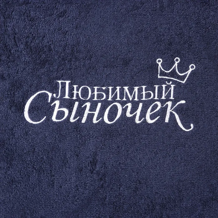 Халат махровый детский "Любимый сыночек" р-р 34 (122-128 см), синий
