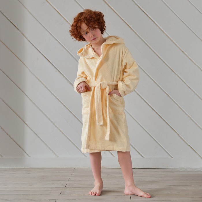Халат махровый детский Экономь и Я, р. 34, цвет молочный, 100% хлопок, 340 г/м2