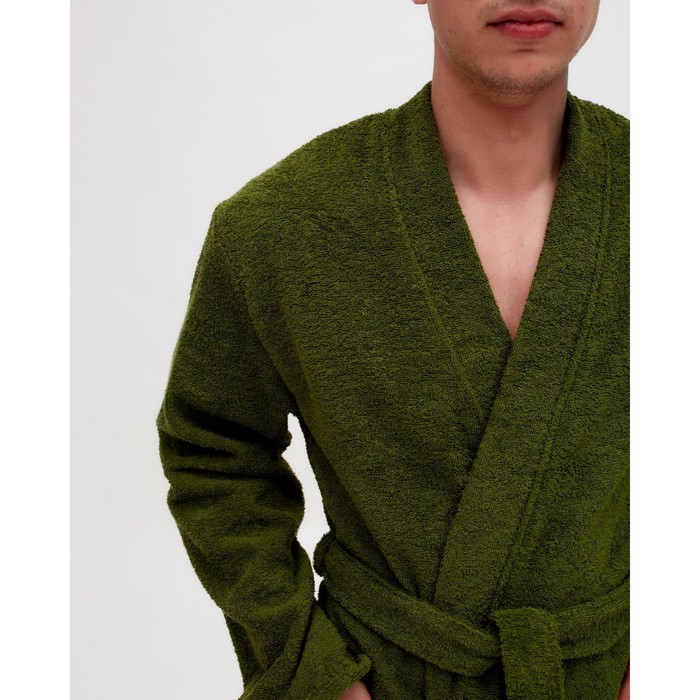Халат махровый Экономь и Я, мужской размер 48-50 цвет хаки, 100% хлопок с AIRO, 320 г/м2