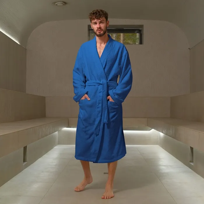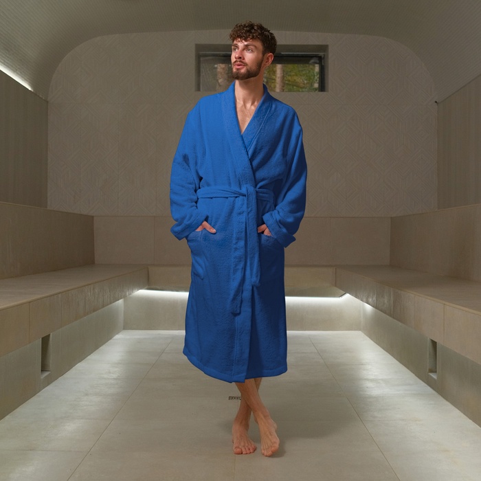 Халат махровый Экономь и Я мужской, размер 48-50, цвет синий, 100% хлопок с AIRO, 320 г/м2