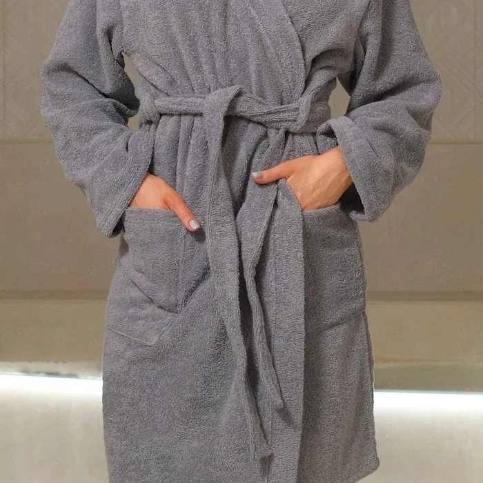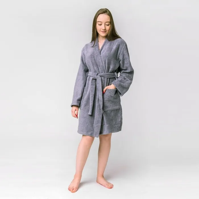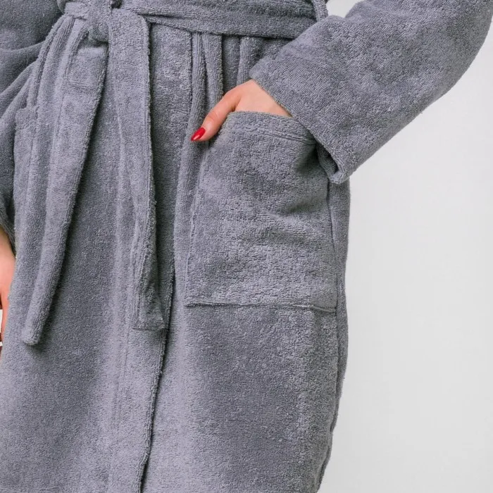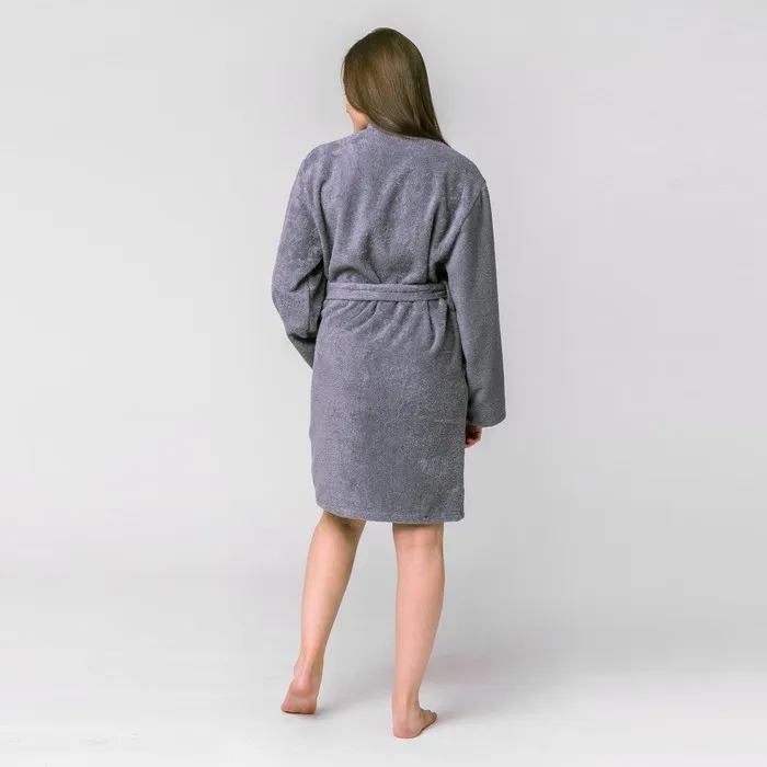 Халат вафельный женский Экономь и Я рукав 3/4, размер 46-48, серый, 100% хлопок, 200г/м2