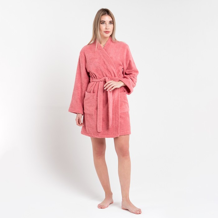 Халат махровый Экономь и Я, жен. р-р 40-42 цв. пыльно-розовый, 100% хл, 320 г/м2