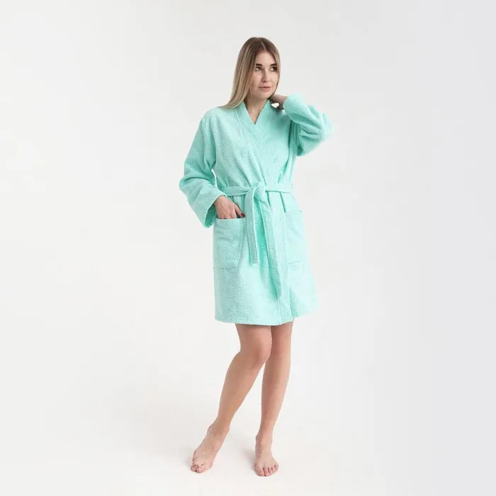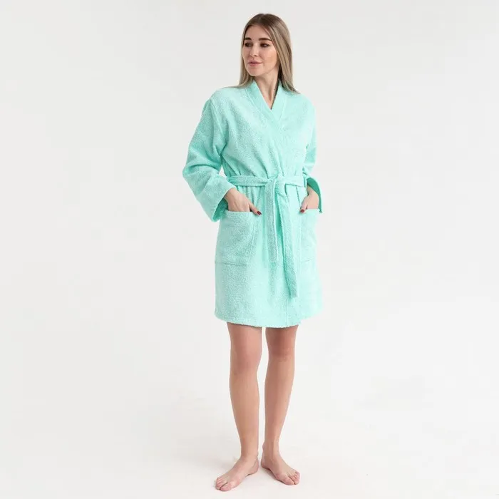 Халат махровый Экономь и Я женский, размер 46-48 цвет нежно-бирюзовый, 100% хлопок, 320 гр/м2