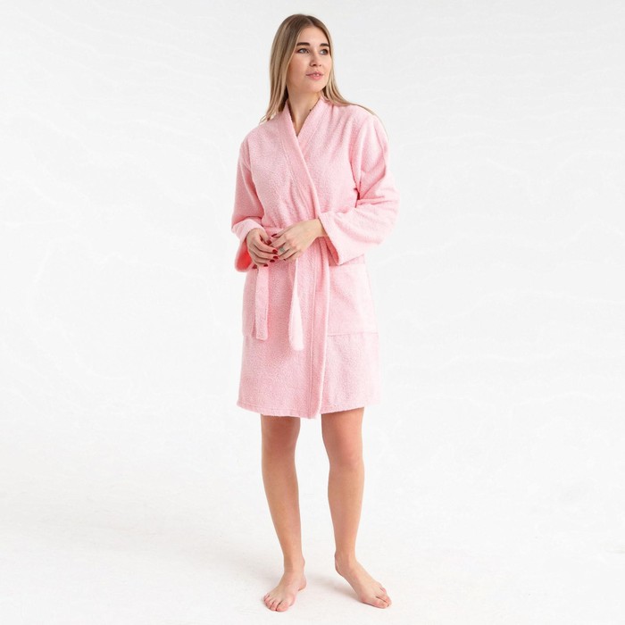 Халат махровый Экономь и Я женский, размер 46-48 цвет нежно-розовый, 100% хлопок, 320 г/м²