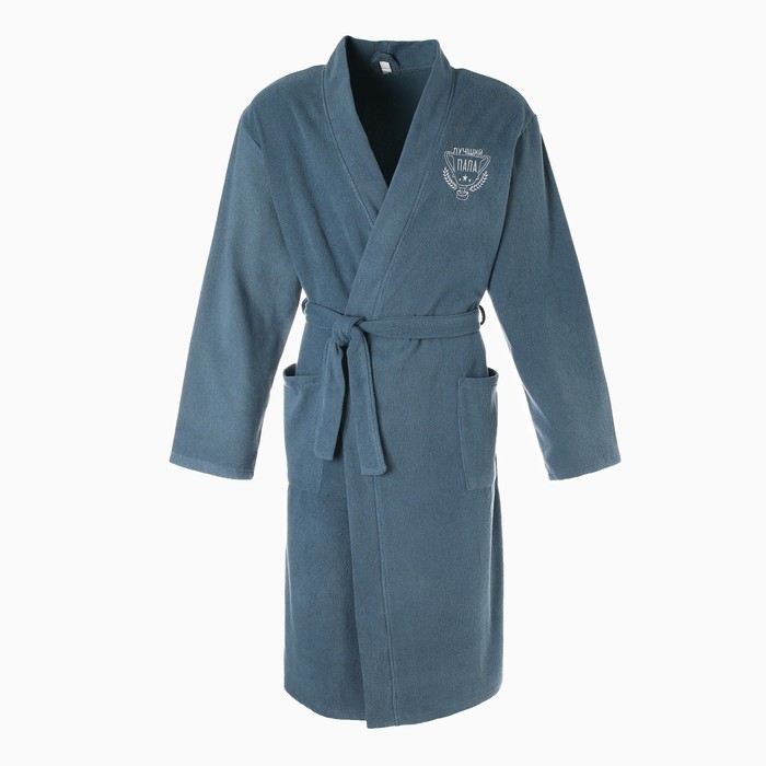 Халат махровый мужской "Лучший папа" размер 56-58, морская волна