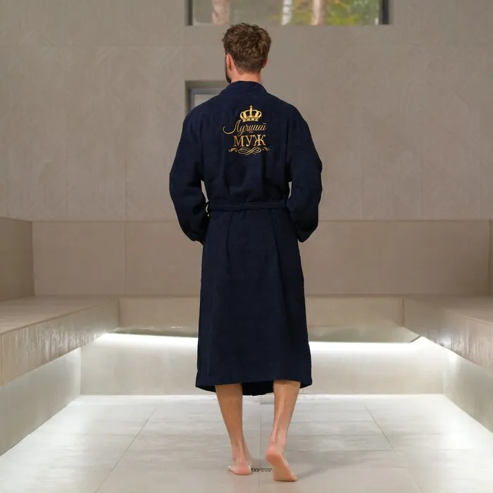 Халат махровый мужск."Лучший муж" р-р 52-54, синий — Характеристики