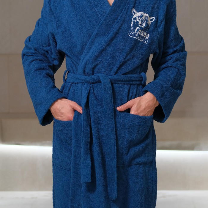 Халат махровый мужской «Глава семьи», размер 56-58, цвет синий — Характеристики