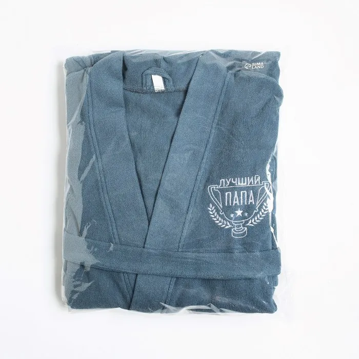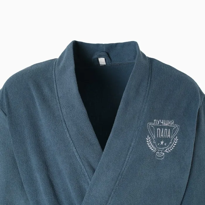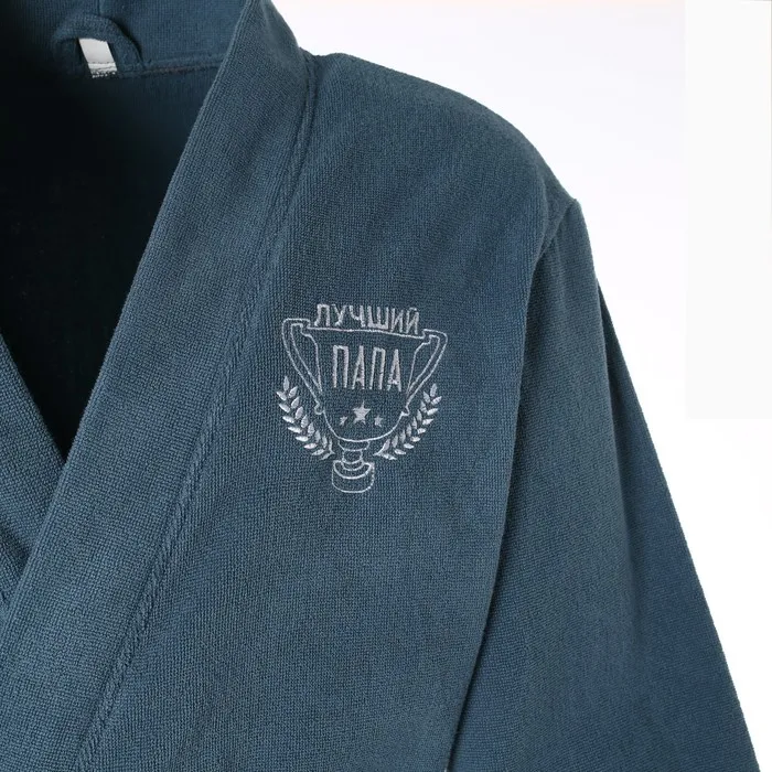 Халат махровый мужской "Лучший папа" размер 56-58, морская волна