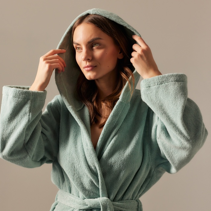 Халат махровый с капюшоном женский SL HOME: Basic "Аззура", р-р M, 100% хл, 420 г/м2 — Характеристики