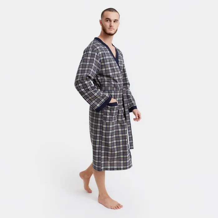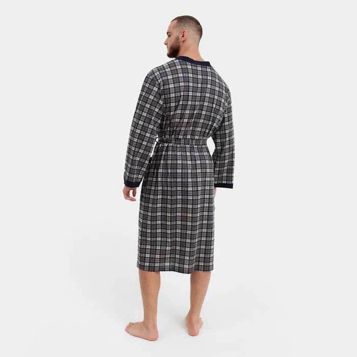 Халат вафельный мужской удлинённый Экономь и Я размер 46-48, цвет серый, 100% хлопок, 200г/м2