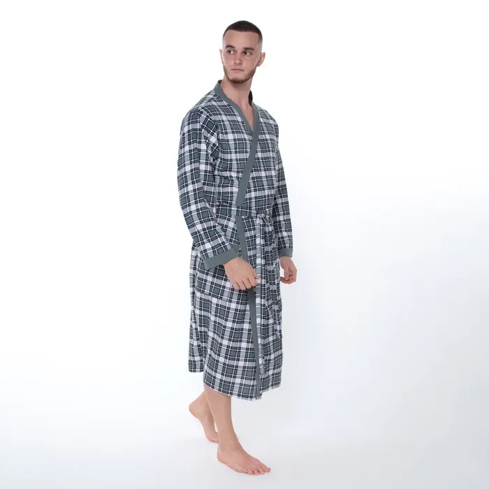Халат вафельный мужской Экономь и Я рукав 3/4, размер 46-48, серый, 100% хлопок, 200г/м2