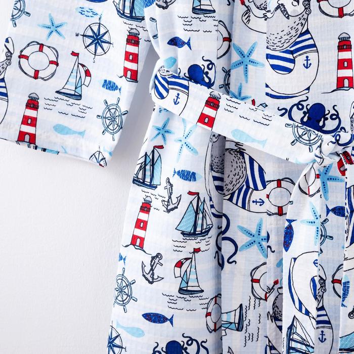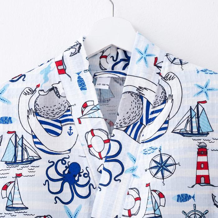 Халат махровый детский, размер 36, цвет синий, 340 г/м2 хл.100% с AIRO