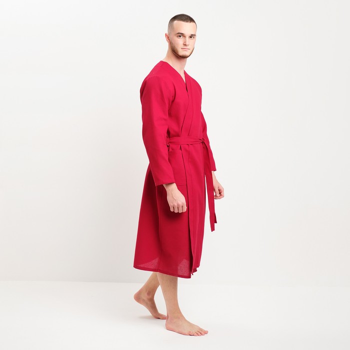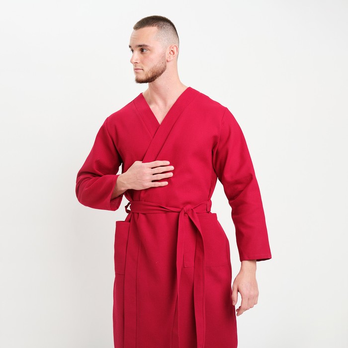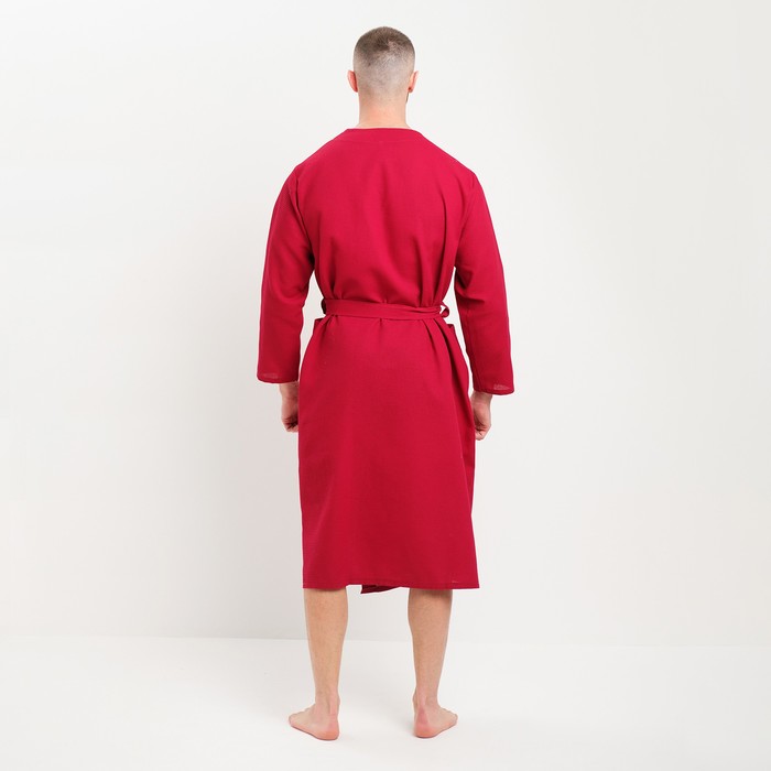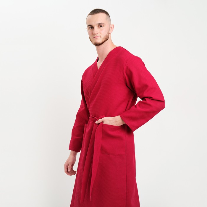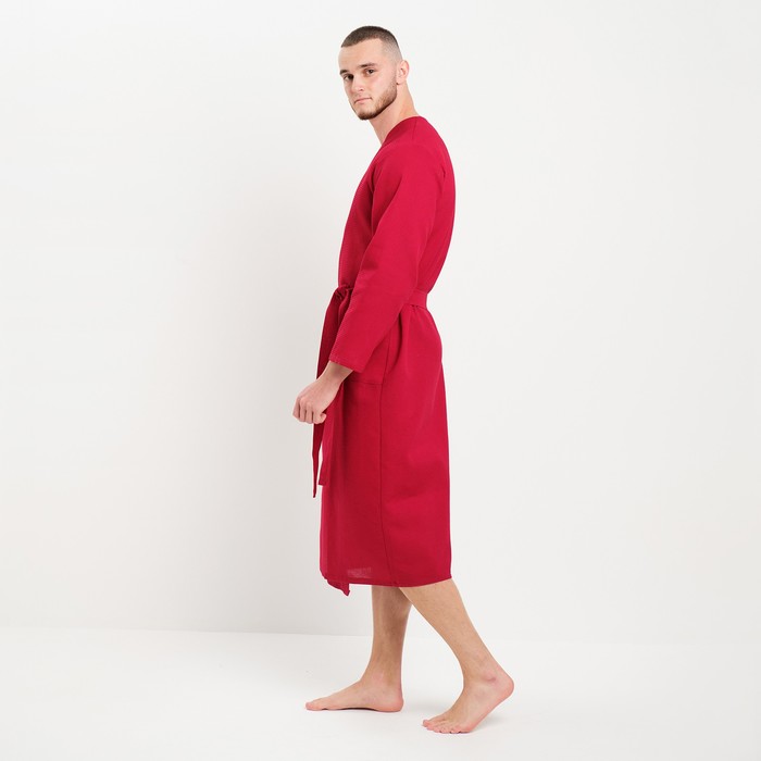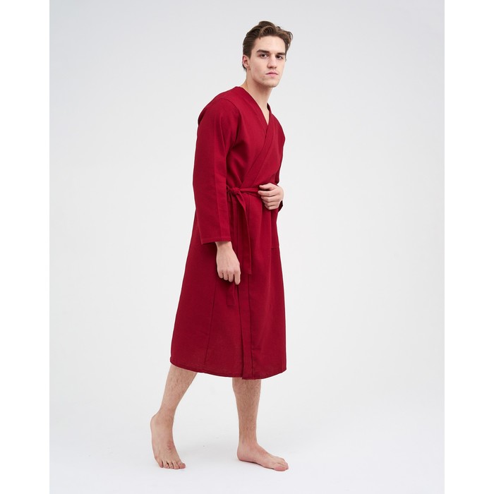 Халат мужской вафельный запашной, цвет вишня, размер 54, 160гр/м