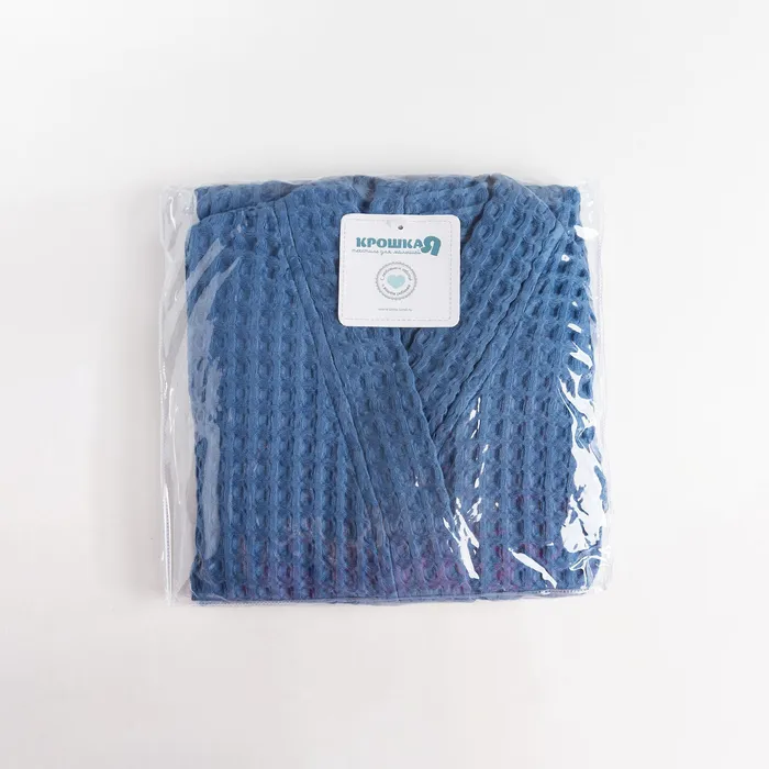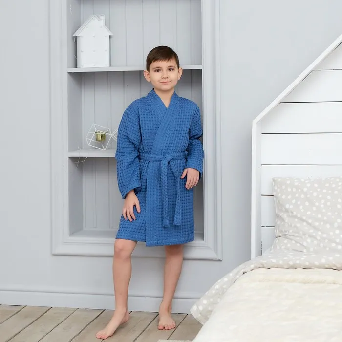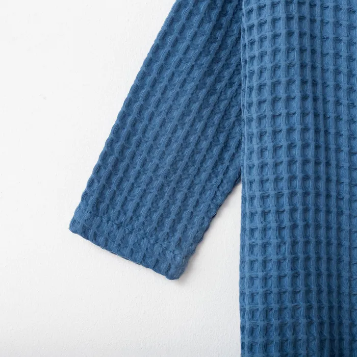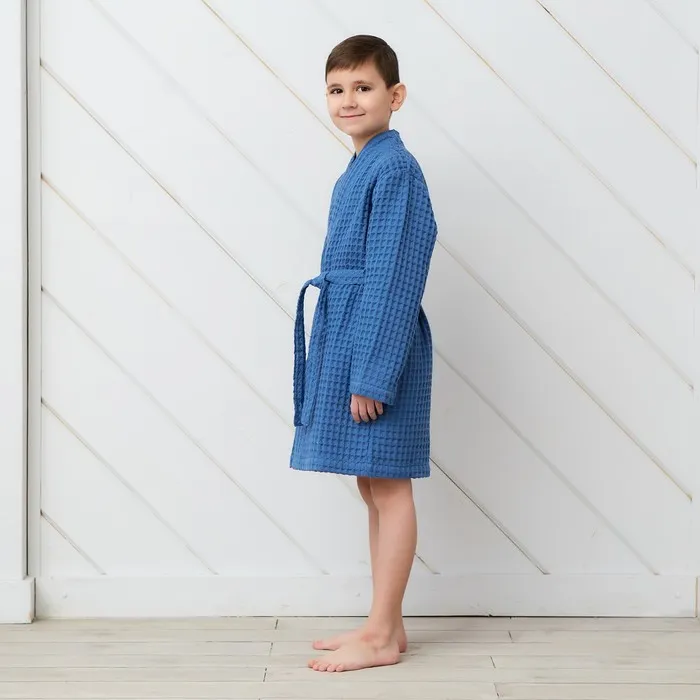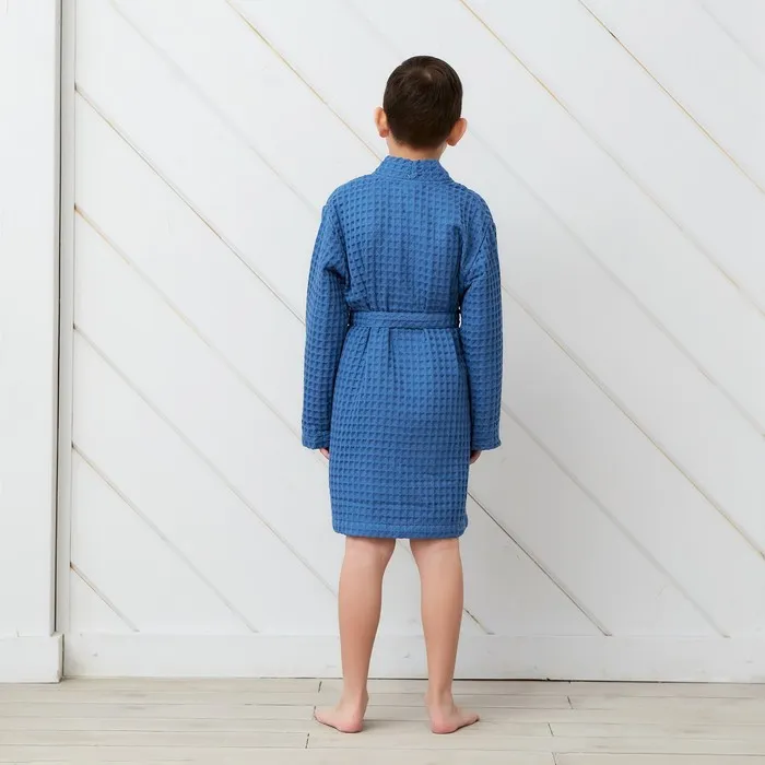 Халат вафельный детский Крошка Я Boho размер 30 (98-104 см), синий, 100% хлопок 290 г/м² — Характеристики