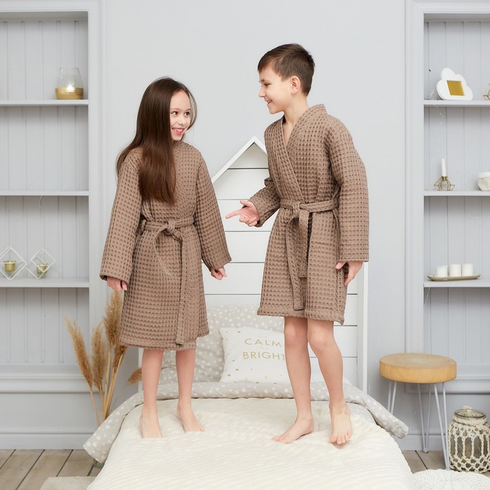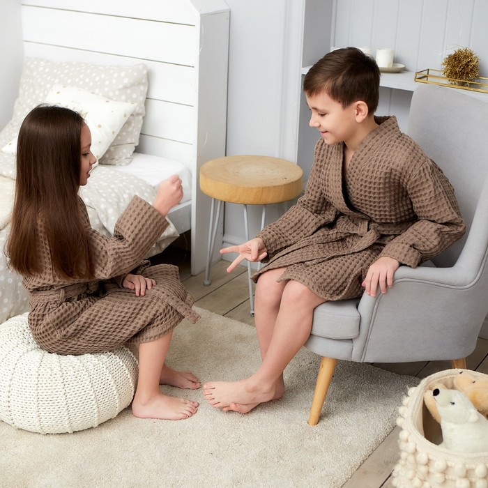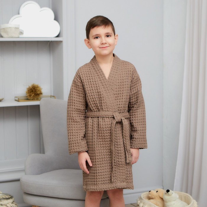 Халат вафельный детский Крошка Я "Boho" размер 30 (98-104 см) цвет мокко, 100% хлопок 290 г/м2 — Характеристики
