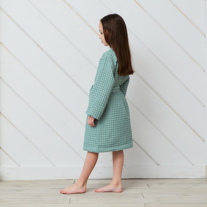 Халат вафельный детский Крошка Я «Boho» размер 34 (122-128 см) цвет мятный, 100% хлопок 290 г/м² — Характеристики