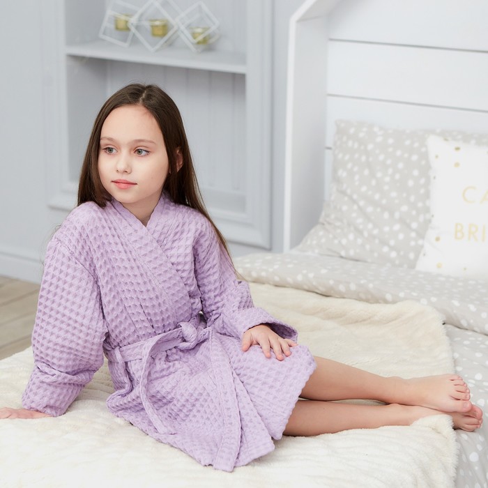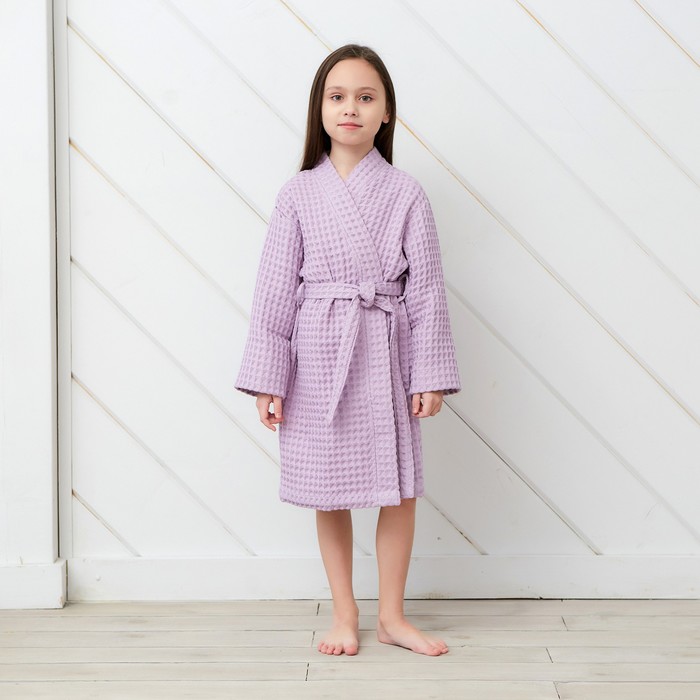 Халат вафельный детский Крошка Я "Boho" размер 34 (122-128 см) цвет сиреневый, 100% хлопок 290 г/м2