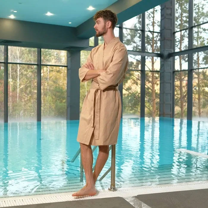 Горячая ванна, а лучше жаркая баня с вениками — это ощущение комфорта и расслабленности! Сохранить приятное чувство чистоты и покоя поможет правильно подобранный халат. Модель создана на собственном производстве в России, где обеспечивается непрерывный контроль качества продукции.