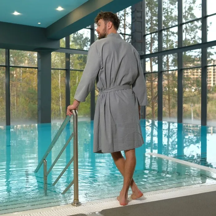 Горячая ванна, а лучше жаркая баня с вениками — это ощущение комфорта и расслабленности! Сохранить приятное чувство чистоты и покоя поможет правильно подобранный халат. Модель создана на собственном производстве в России, где обеспечивается непрерывный контроль качества продукции.