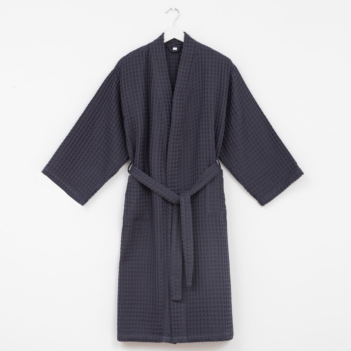 Халат вафельный мужской удлиненный Этель "Boho" размер 54-56, цвет тёмно-серый, 100% хлопок, 290 г/м2