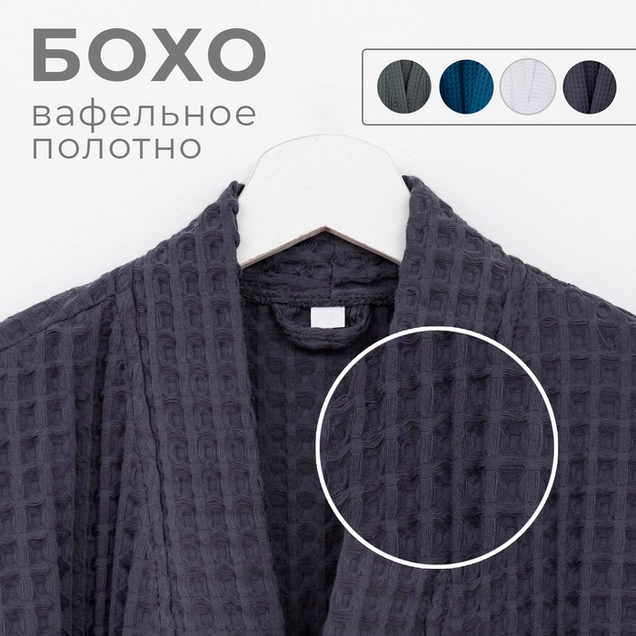 Халат вафельный мужской удлиненный Этель "Boho" размер 54-56, цвет тёмно-серый, 100% хлопок, 290 г/м2 — Характеристики