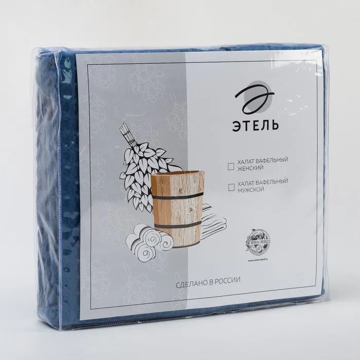 Халат вафельный мужской удлиненный Этель "Boho" размер 58-60, цвет синий, 100% хлопок, 290 г/м2 — Характеристики