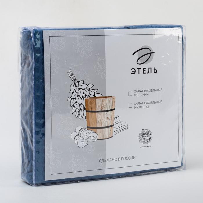 Халат вафельный мужской удлиненный Этель "Boho" размер 58-60, цвет синий, 100% хлопок, 290 г/м2