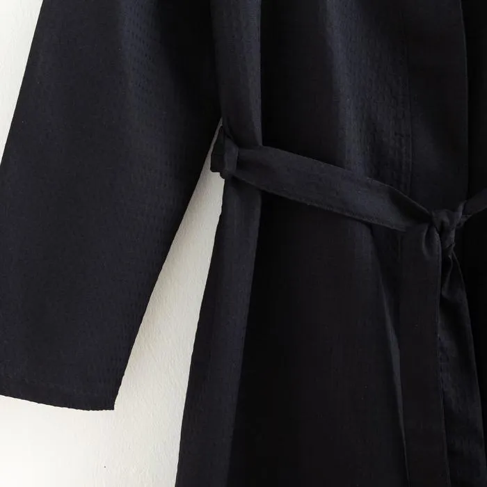 Халат вафельный мужской удлинённый Экономь и Я размер 50-52, цвет чёрный, 100% хлопок, 200г/м2