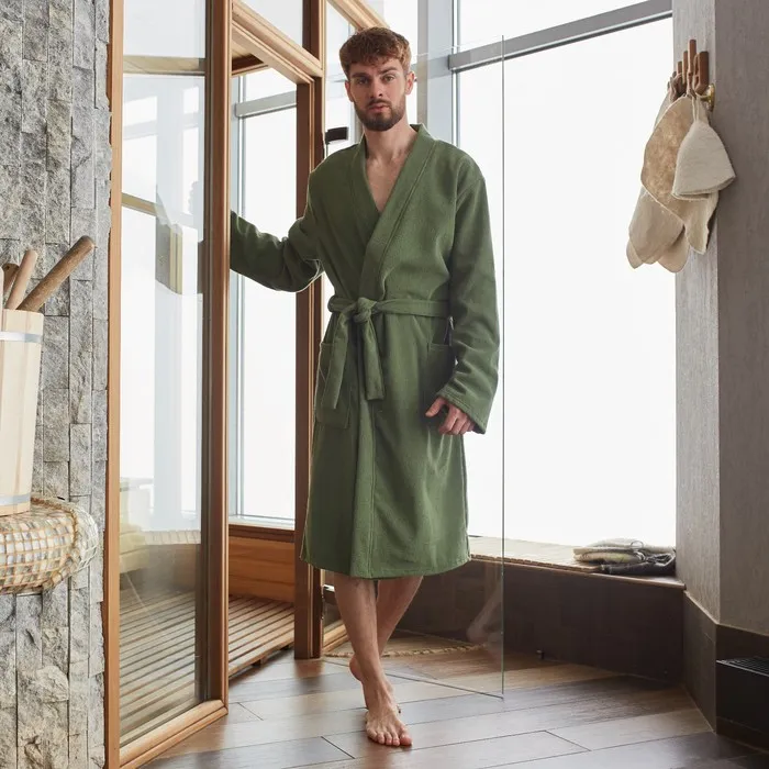 Халат вафельный мужской удлинённый Экономь и Я размер 54-56, цвет хаки, 100% хлопок, 200г/м2