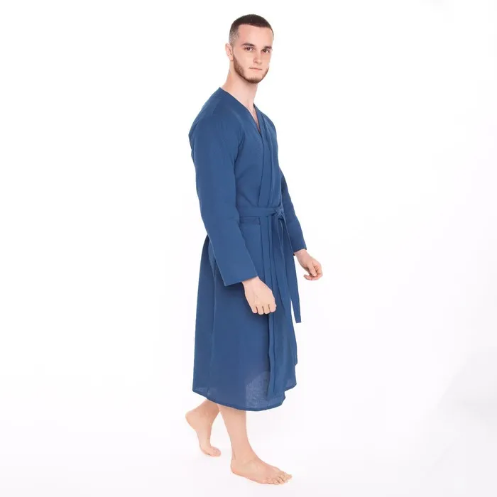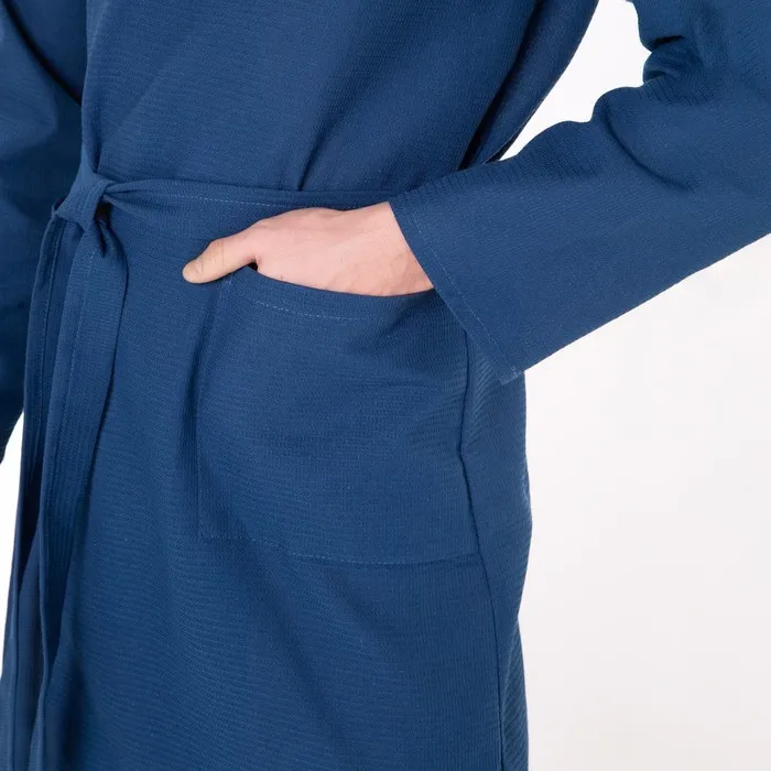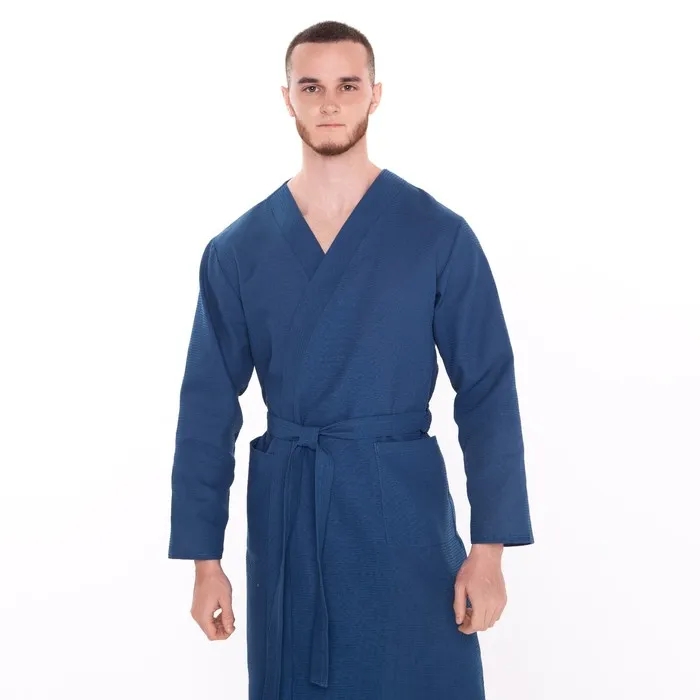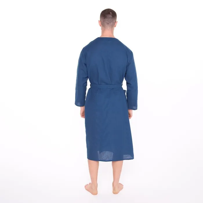 Халат вафельный запашной мужской р-р 50, цв.Василек, 160 гр/м,Хл.100%