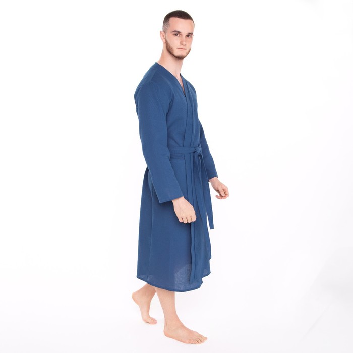 Халат вафельный запашной мужской р-р 52, цв.Василек, 160 гр/м,Хл.100%