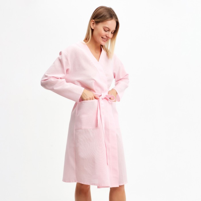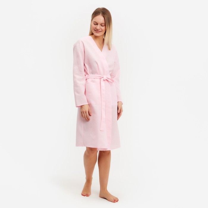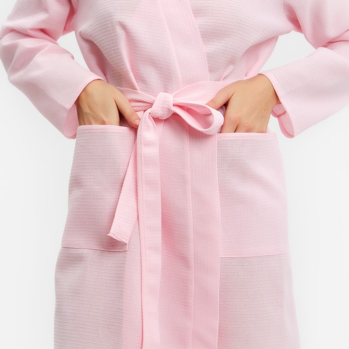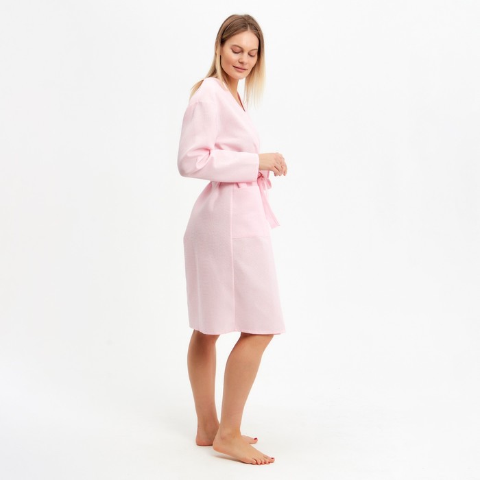 Нежный и комфортный «Женский вафельный халат» станет идеальным выбором для ежедневного использования в любое время года. Его утонченный розовый цвет добавит изысканности вашему домашнему образу. Благодаря легкой вафельной ткани из 100% хлопка, халат мягко обнимает тело, обеспечивая чувство уюта и комфорта.