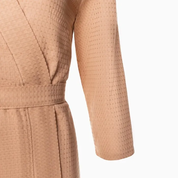 Халат вафельный женский Экономь и Я рукав 3/4, размер 42-44, бежевый, 100% хлопок, 200г/м2