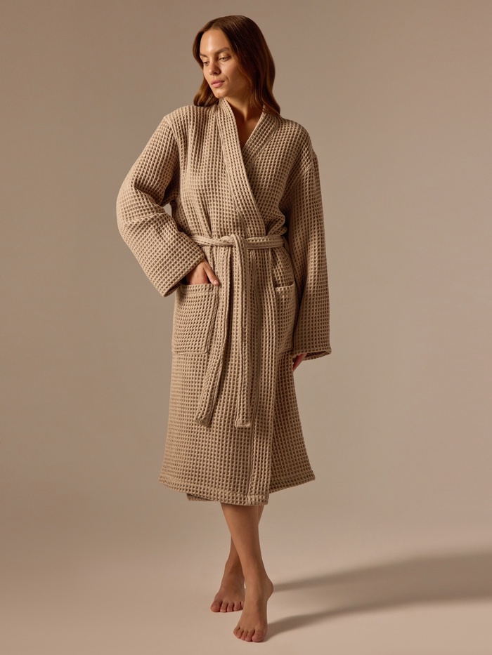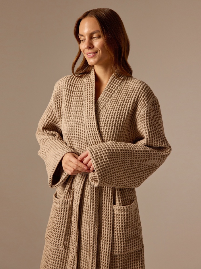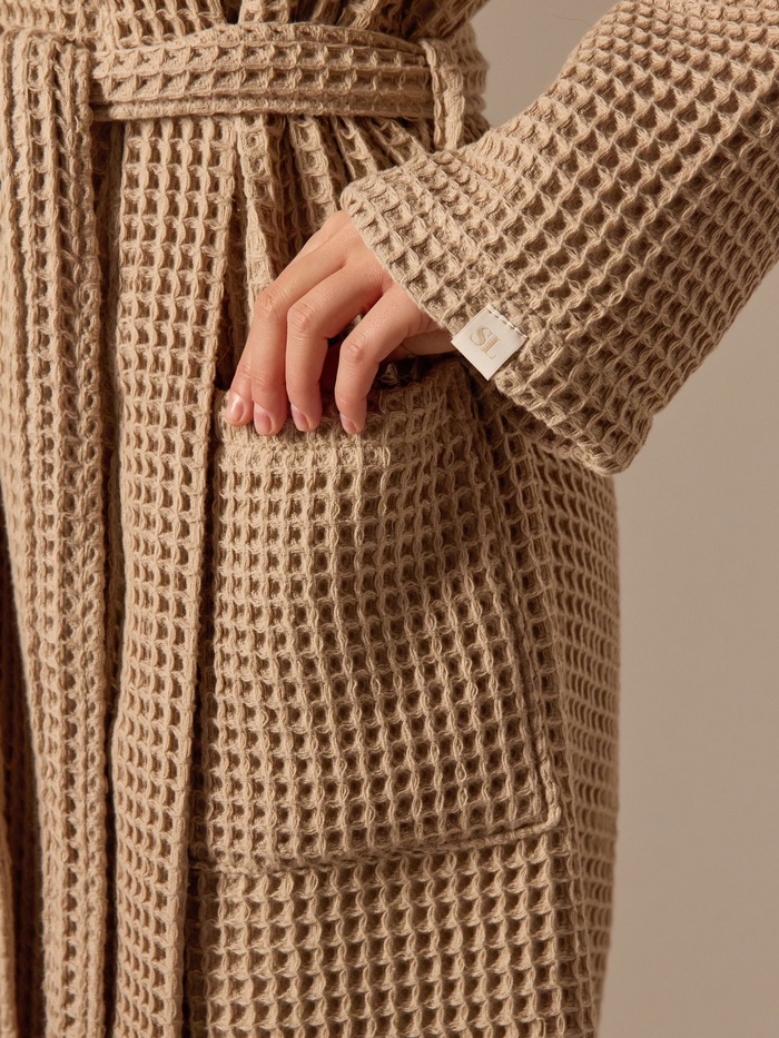 Халат вафельный женский SL HOME: Boho «Саббиа», размер M, хлопок 100%, коричневое — Характеристики