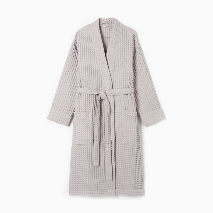 Халат вафельный женский Экономь и Я рукав 3/4, размер 54-56, серый, 100% хлопок, 200г/м2