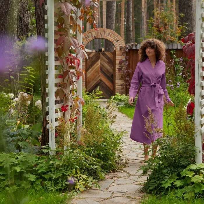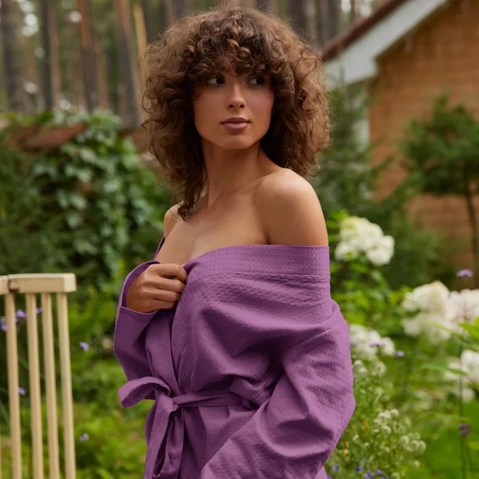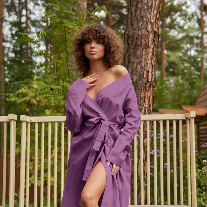 Халат вафельный женский удлинённый Экономь и Я размер 42-44, цвет лаванда, 100% хлопок, 200г/м2 — Характеристики
