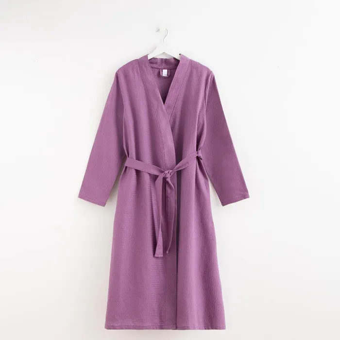 Халат вафельный женский удлинённый Экономь и Я размер 42-44, цвет лаванда, 100% хлопок, 200г/м2