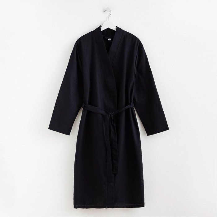 Халат вафельный женский удлинённый Экономь и Я размер 46-48, цвет черный, 100% хлопок, 200г/м2